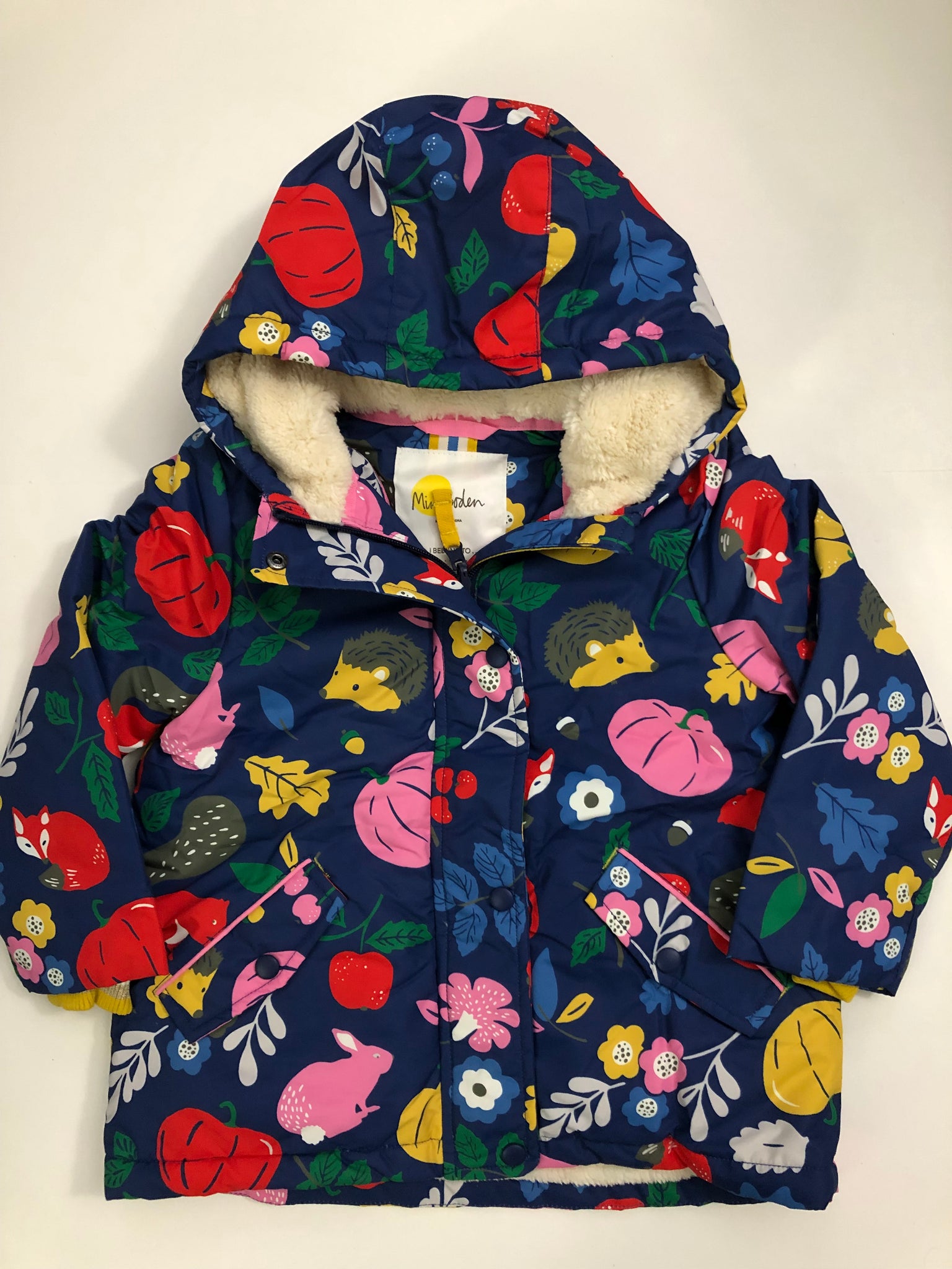 NWOT Mini Boden Sherpa Lined Anorak-Starboard Blue Forest Friends.