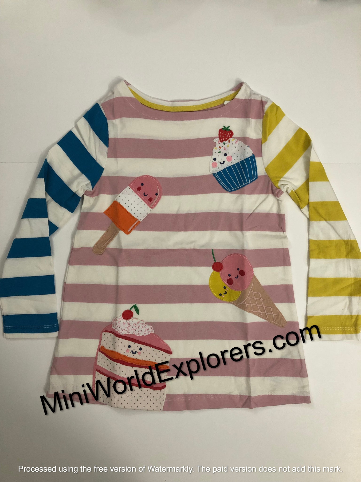 NWOT Mini Boden Long-sleeve Appliqué Tunic-Ivory/Boto Pink Cake. Super cute!
