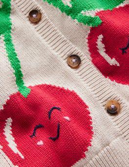Layering up for the cooler seasons gets a little much sweeter with this fruit-bedecked cardigan knit from breathable cotton yarn and sized just for kids.