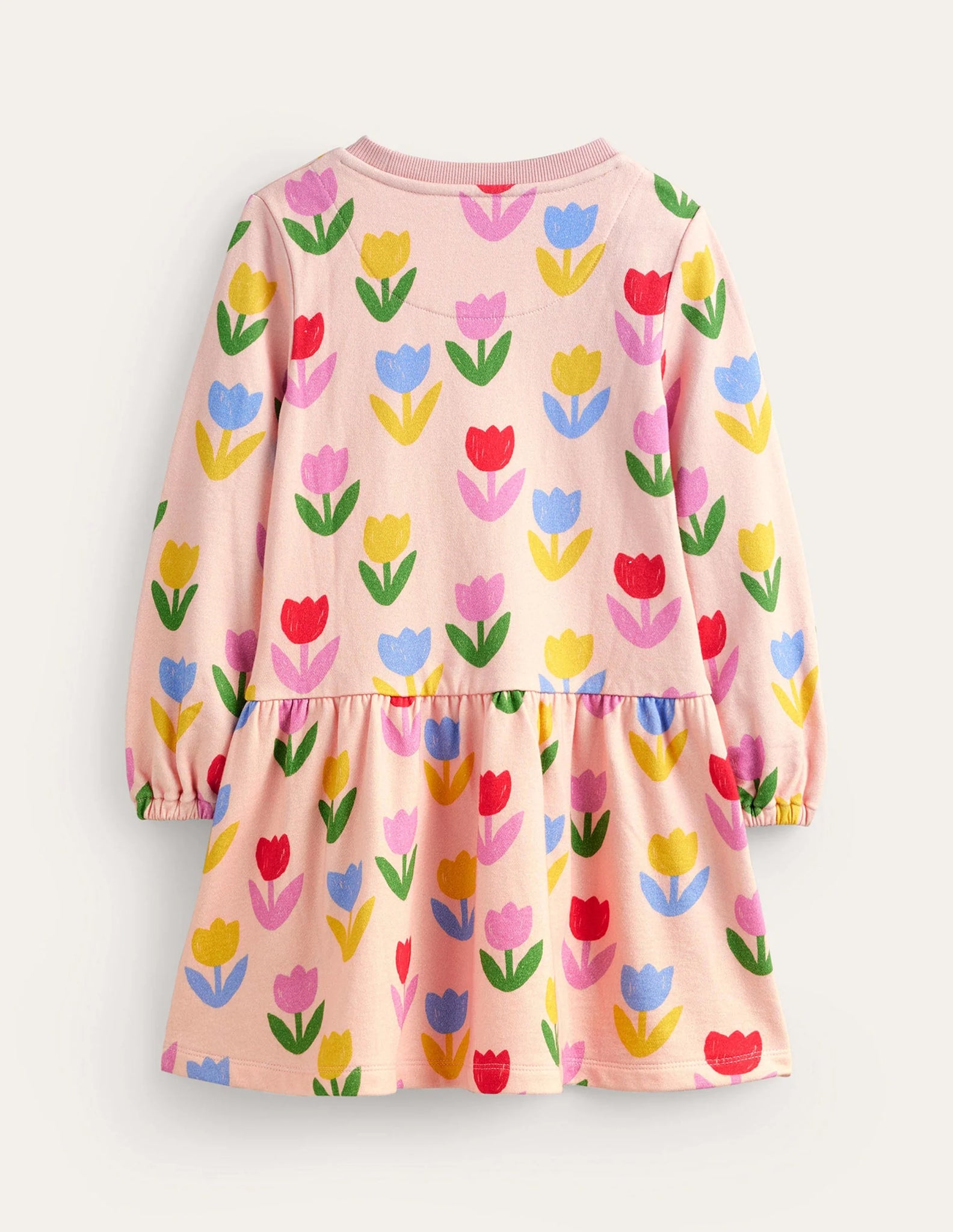 NEW Mini Boden Printed Sweatshirt Dress-Multi tulips. Adorable!
