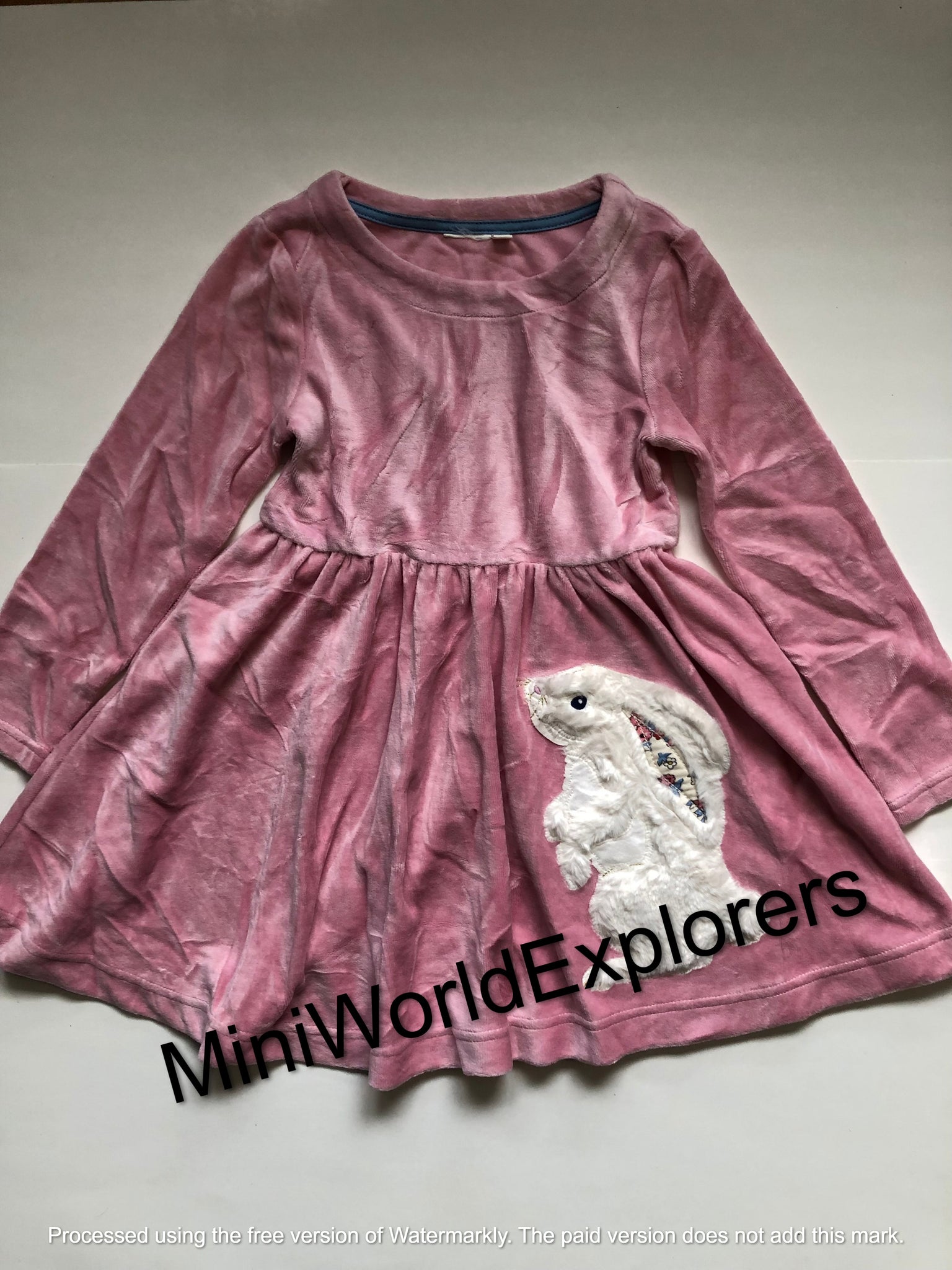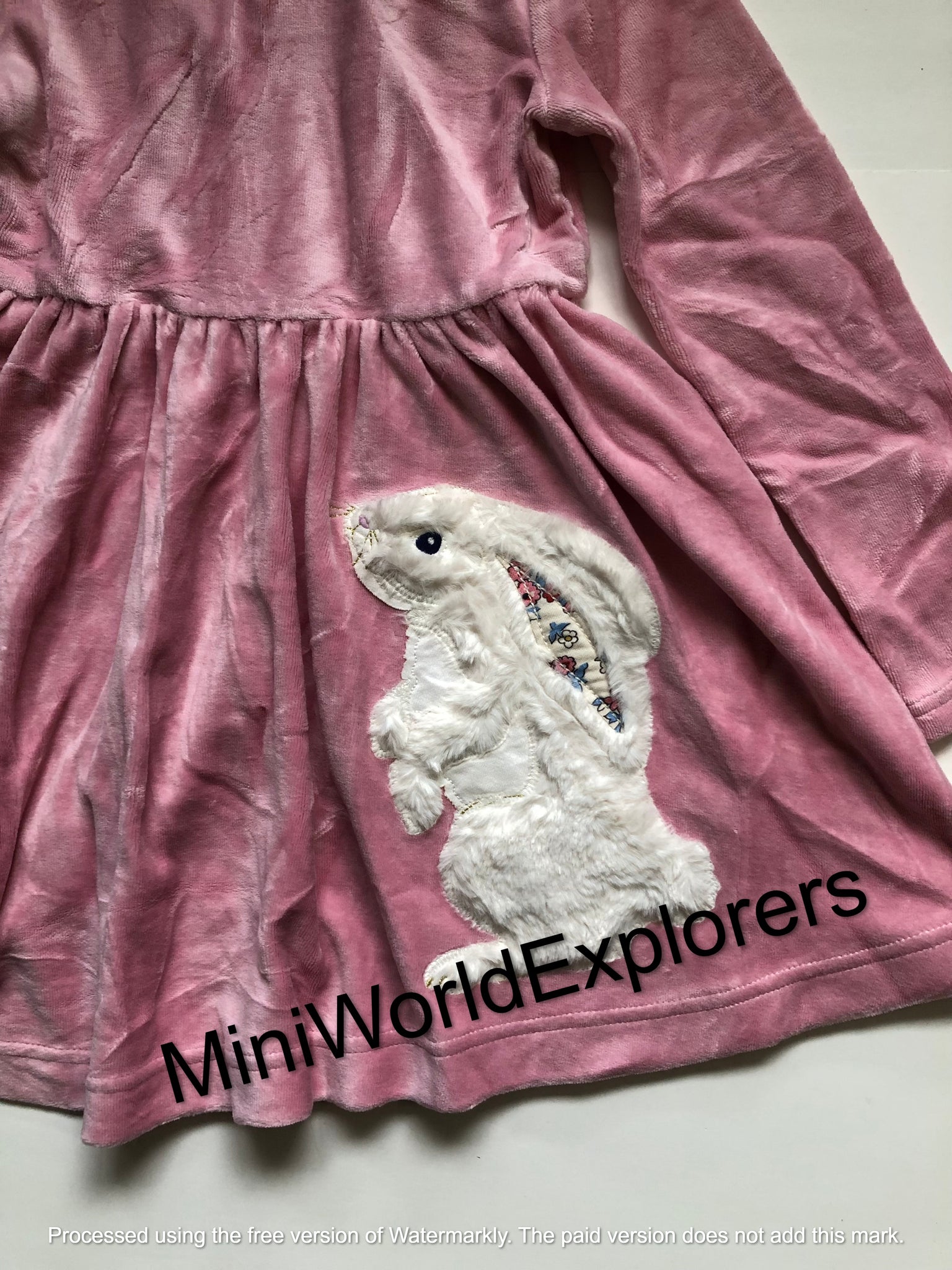 NWOT Mini Boden Twirly Velour Appliqué Dress-Cameo Pink Bunny.