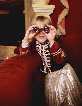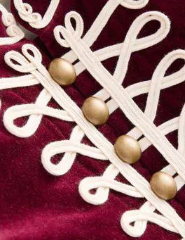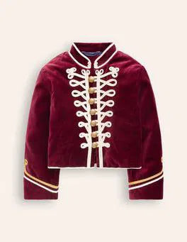 This jacket is your new uniform. Cut from velvet, it's shaped to a classic military-inspired cut with a platoon of gold buttons and frogging on the front. Oh, and did we mention it comes in adult sizes for a matching moment?