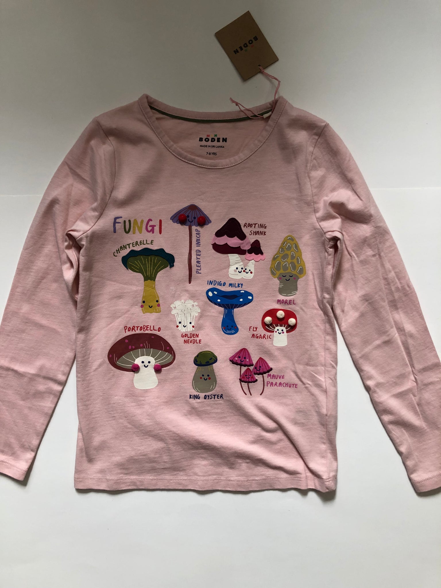 NWT Mini Boden Printed Graphic T-Shirt-Chalk Pink Fungi. Adorable!