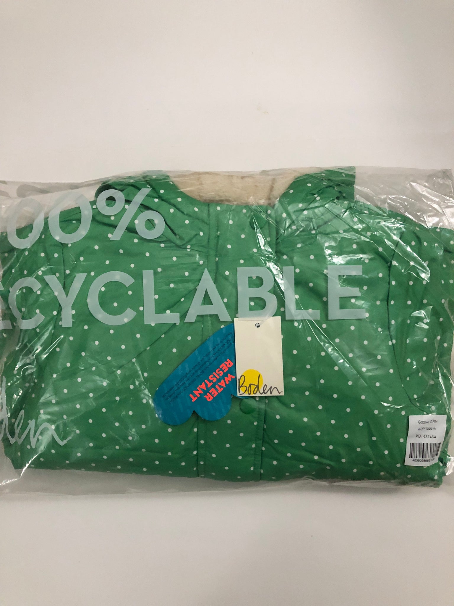 NWT Mini Boden Polka Dot Appliqué Sherpa Lined Anorak-Green Friends.