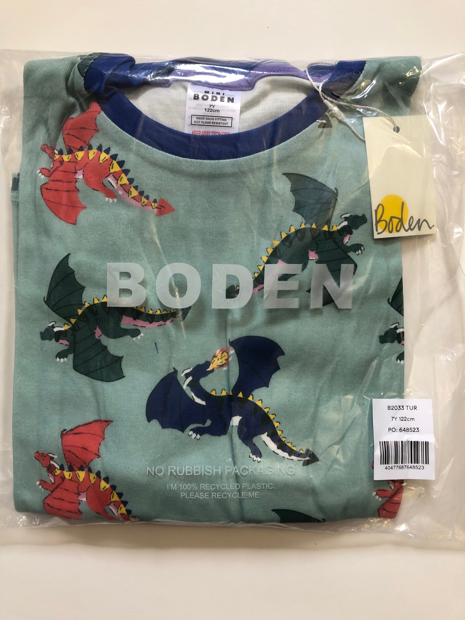 NWT Mini Boden Snug  ajamas set-Georgian Blue Dragons.