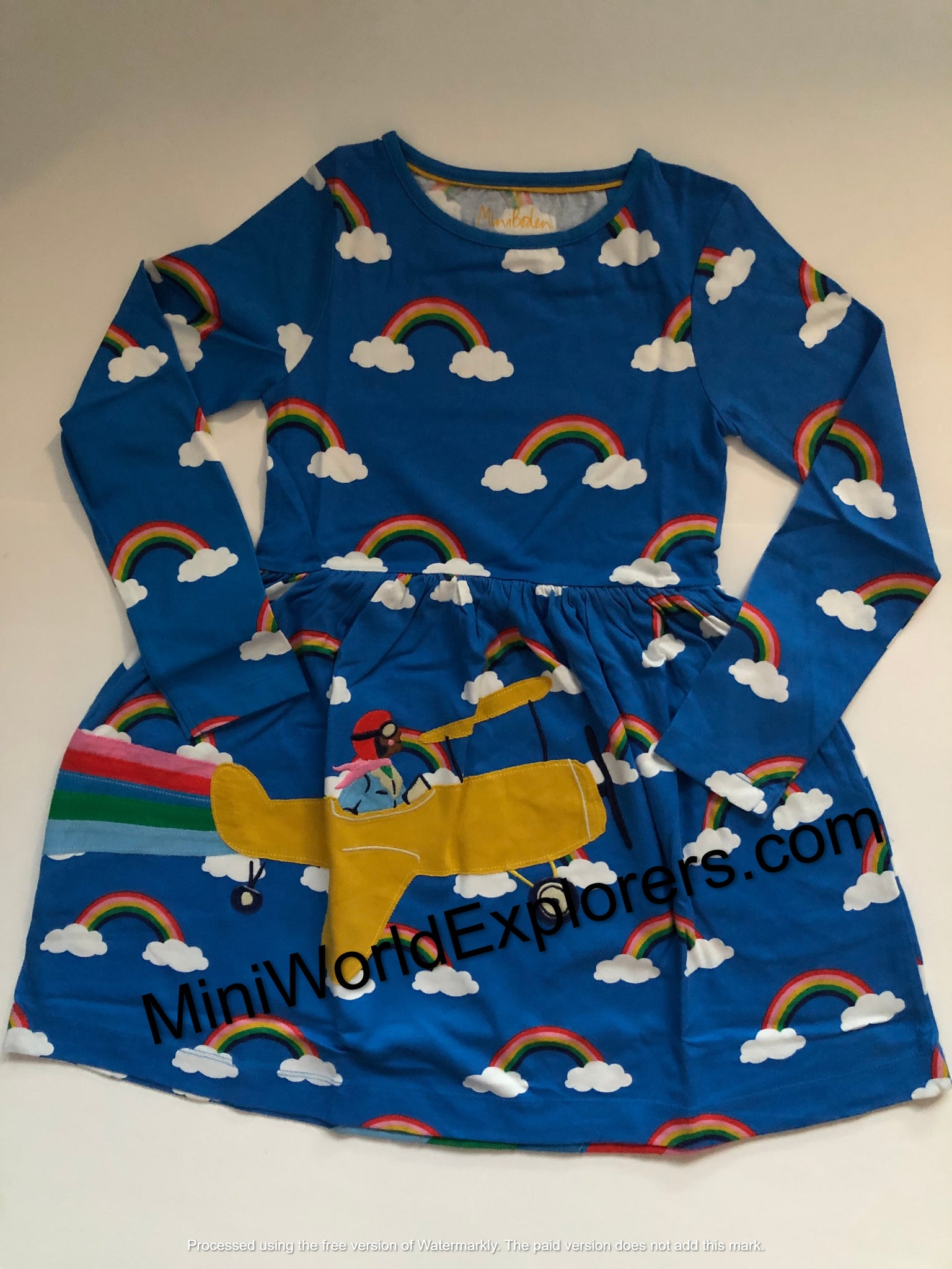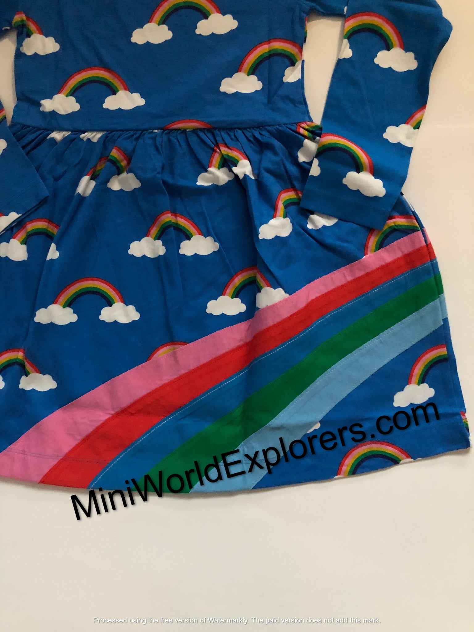 NWOT Mini Boden Fun Applique Dress-Moroccan Blue Rainbow Cloud. Adorable!