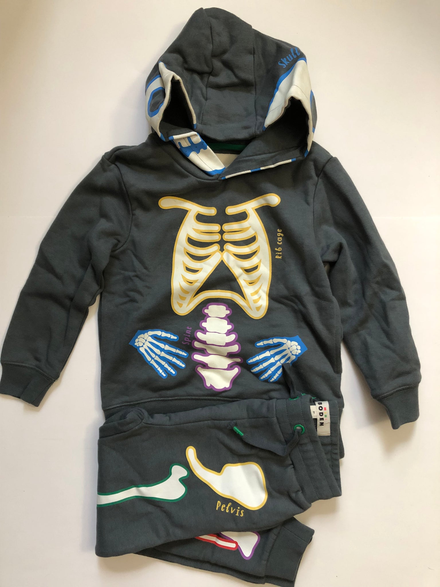 NWOT Mini Boden Glow Printed Skeleton sweatshirt and Joggers set.