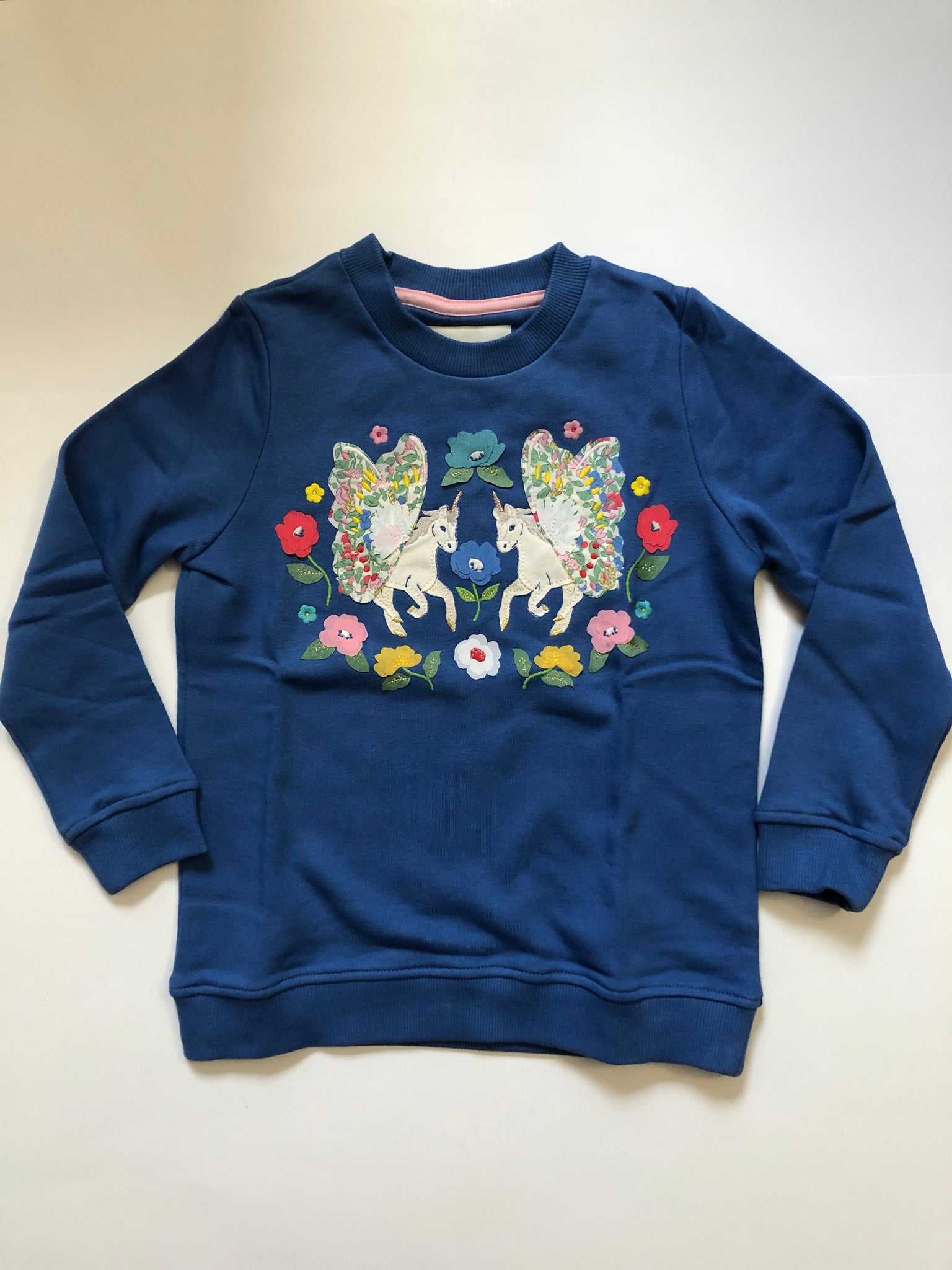MWOT Mini Boden Appliqué Sweatshirt-Bluejay Blue Unicorn. Adorable!