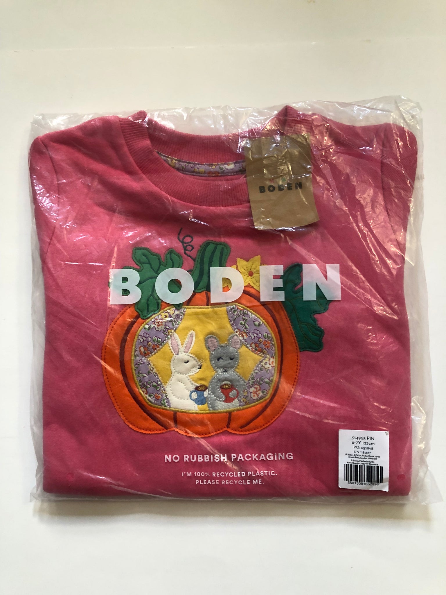 MWT Mini Boden Appliqué Sweatshirt-Rose Petal Pink Pumpkin House. Adorable!