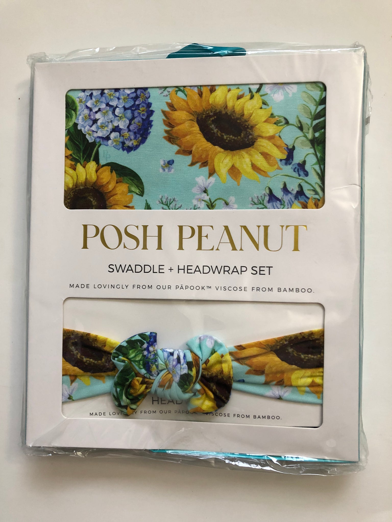 NWT Posh Peanut Infant Swaddle and Headwrap Set
