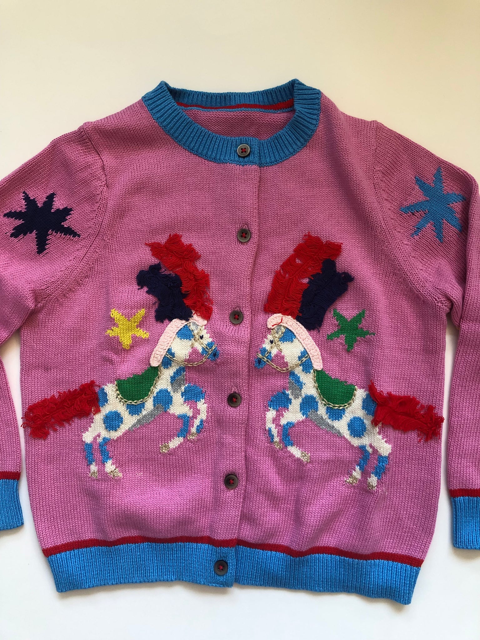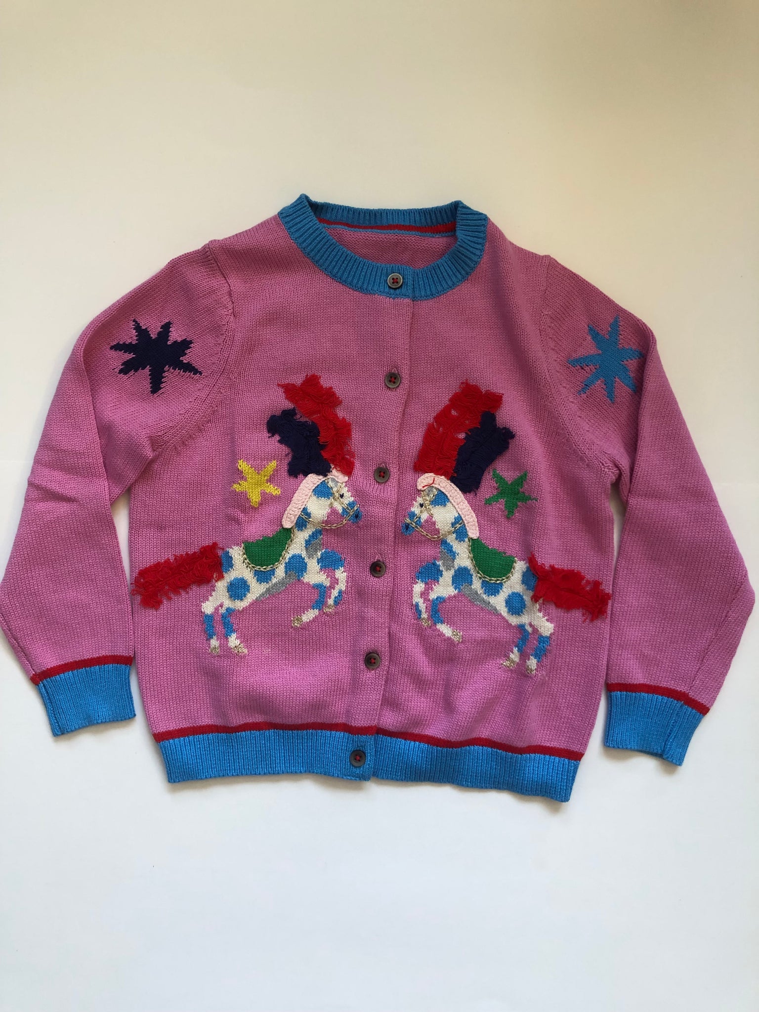 NWOT Mini Boden Appliqué Cotton Cardigan-Multi Vintage Mauve Circus Horse. Super cute!