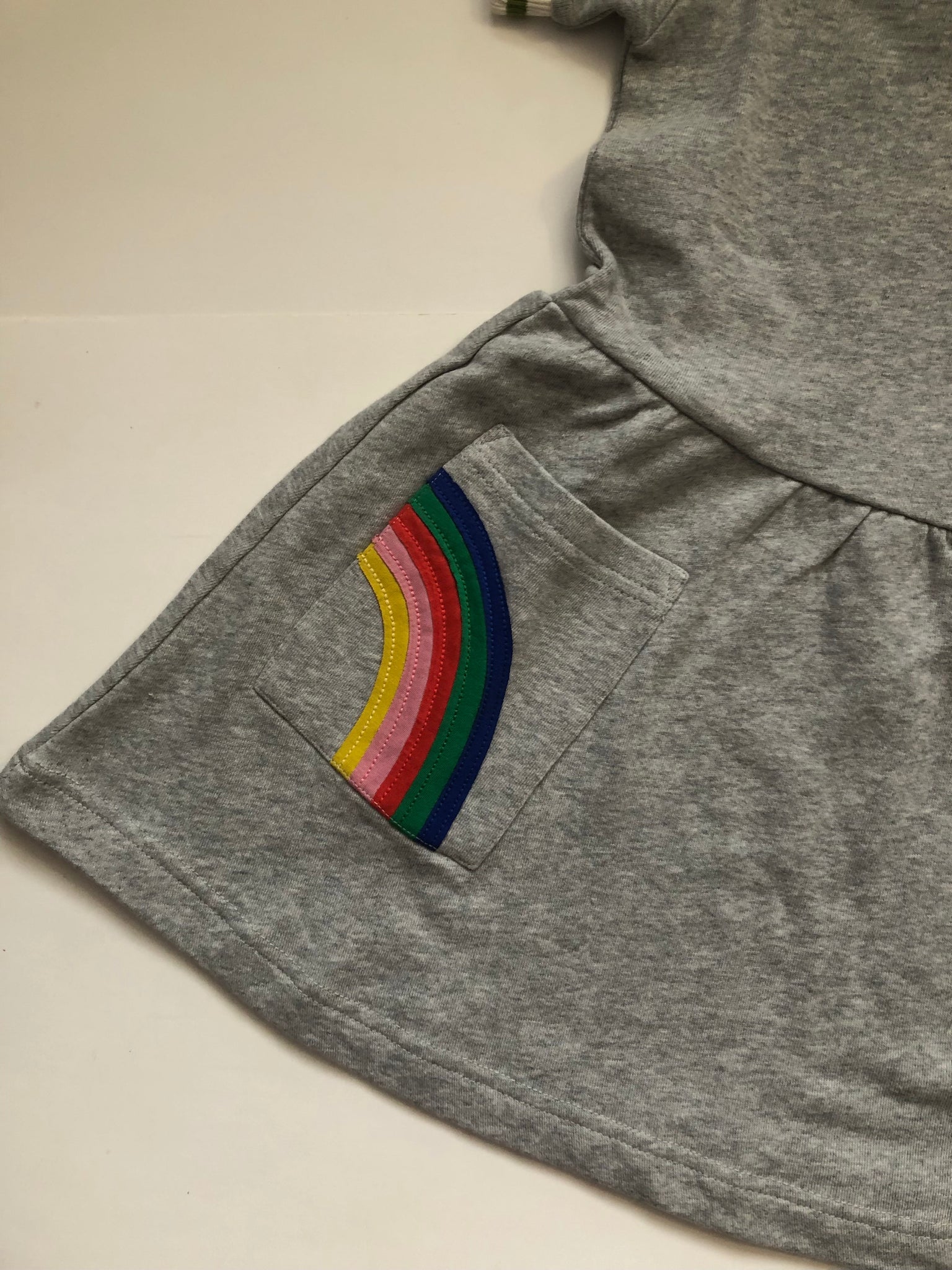 NWOT Mini Boden Appliqué Pocket Jersey Dress-Multi rainbow. Adorable!