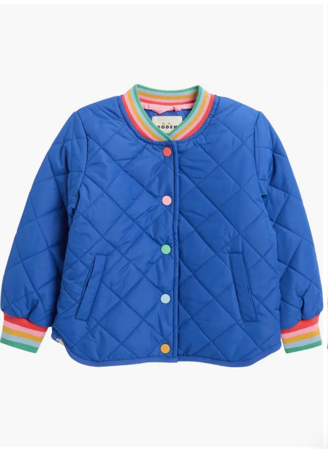 NWT Mini Boden Fun Quilted Bomber Jacket-Rainbow Flower
