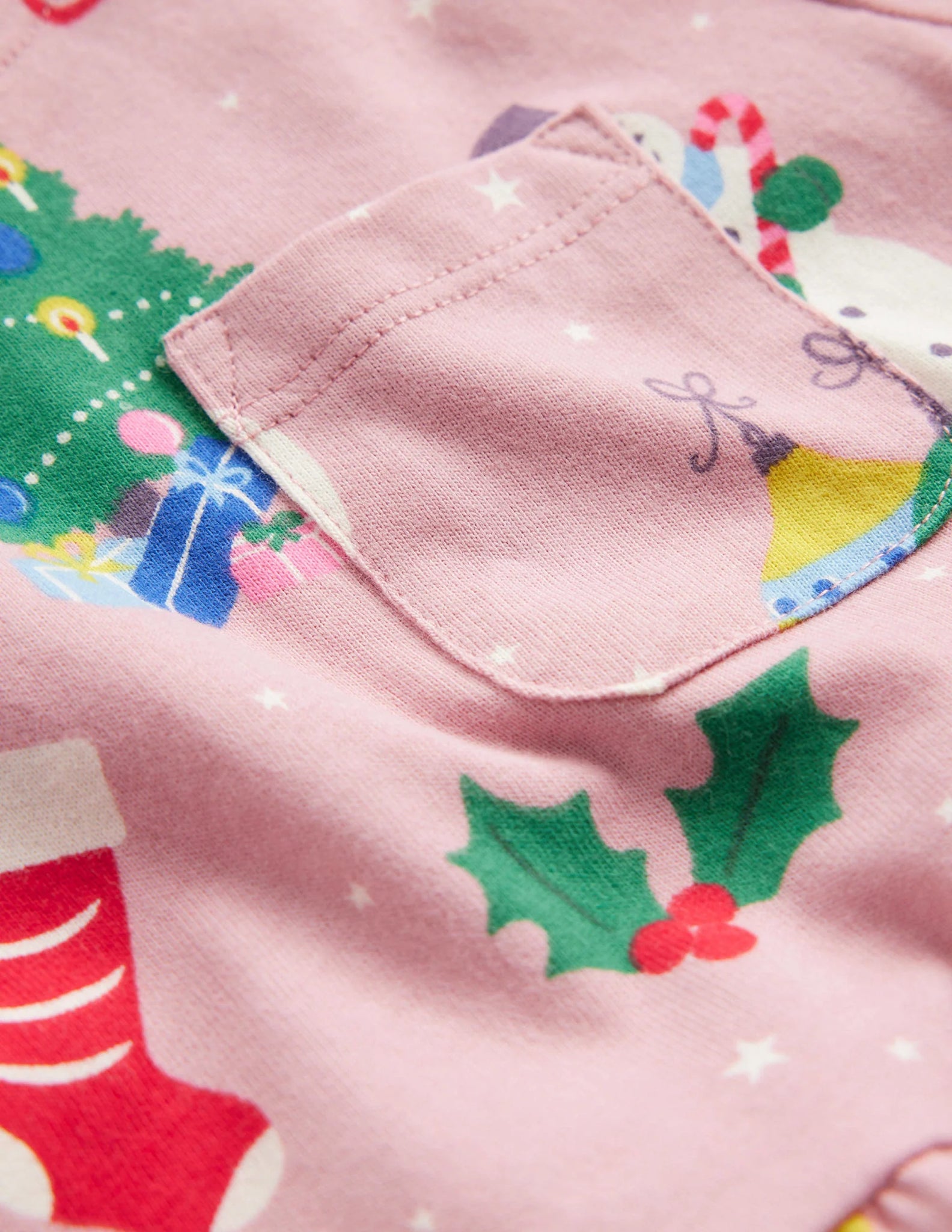 NWOT Mini Boden Long Sleeve Fun Jersey Dress-Almond Pink Festive.