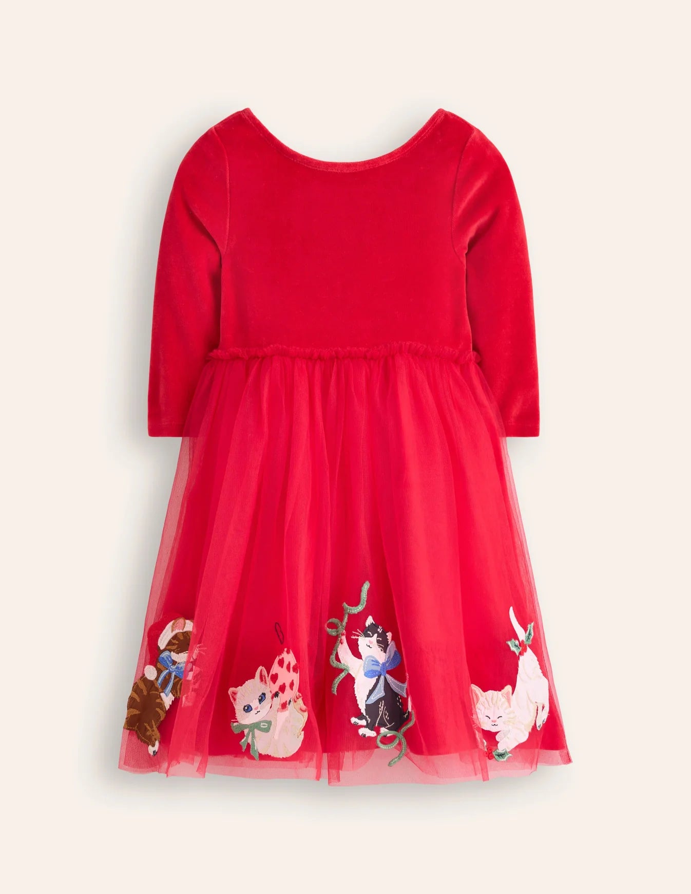 NWT Mini Boden Velvet Tulle Appliqué Dress-Rouge Red Cats. Stunning!