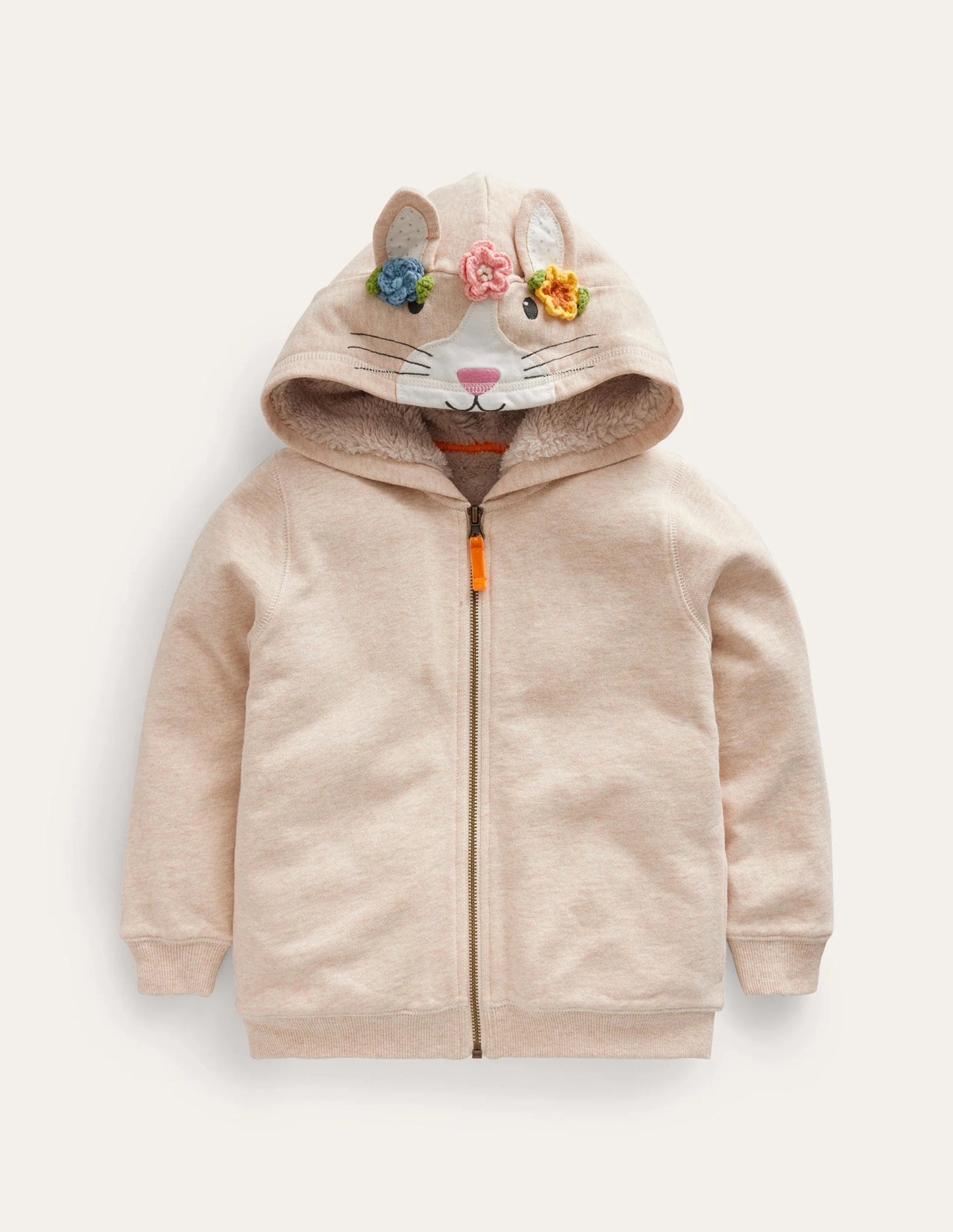 NWOT Mini Boden Fun Shaggy-Lined Hoodie-Oatmeal Marl Bunny
